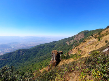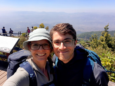 Die Royal Pagodas sind zwei große, einigermaßen schöne Pagoden oben auf dem Berg. Viel schöner ist aber die Blumenlandschaft, die man ringsrum angelegt hat. Gleich daneben beginnt der Kew Mae Pan Nature Trail, auf den wir uns eigentlich am meisten gefreut hatten. Dass wir über dreißig Minuten davor sitzen, um auf eine andere Gruppe zu warten, hatten wir aber nicht geahnt… „Zwei Minuten“ hat unser Guide immer wieder gesagt… Irgendwann sind wir dann doch los, ohne andere Gruppe…? Der Trail selbst ist aber wirklich schön, führt erst durch den schattigen Wald und dann entlang einer sonnigen Bergheide mit grandiosem Ausblick bis runter ins Tal. Die Landschaft sieht aber tatsächlich eher aus wie Spanien, nicht wie Thailand. Auf dem Trail hatten wir einen anderen Guide dabei – da es aber keinerlei Abzweigungen gibt und man zwangsläufig wieder am Anfang rauskommt, wohl eher um die Schäfchen zusammenzuhalten. 😉
