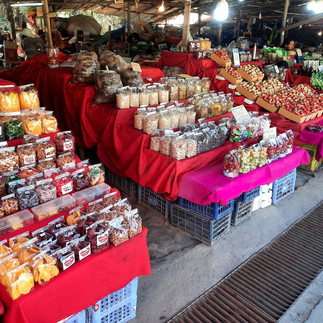 Nach dem Mittagessen konnten wir eine Runde über den Markt eines lokalen Bergvolkes schlendern. Zu kaufen gab es vor allem Erdbeeren, getrocknete Früchte (Mango mit Honig können wir sehr empfehlen) und Nüsse. Anschließend waren wir alle kurz in einem Dorf, das vor allem Kaffee und Tee anbaut, auch hier konnten wir uns ein bisschen durchprobieren.