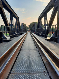 Heute ist es ein friedlicher Ort und die (wieder errichtete) Brücke ist der Touristenmagnet der Stadt. Den Film "Die Brücke am Kwai" haben wir zwar nicht gesehen, aber faszinierend ist es allemal, hier über die Gleise zu spazieren. Wir hatten großes Glück und haben zufälligerweise den letzten der sechs täglichen Züge gesehen, die hier trotz Fußgängern noch über die Brücke fahren.