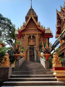 Damit wir doch noch ein bisschen mehr von der Stadt sehen, sind wir mit dem Taxi ins Stadtinnere gefahren und haben uns das Kriegsmuseum angeschaut. Hier dreht sich alles um die Rolle Kanchanaburis im Zweiten Weltkrieg - eine düstere, sind doch Hunderttausend Kriegsgefangene der Japaner beim Bau der Brücken über den Fluss Kwai und der Eisenbahnlinie "Death Railway" ums Leben gekommen.